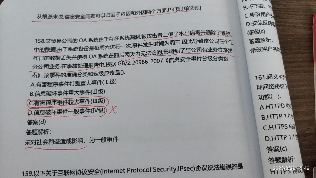 4.一般事件:特别重要信息系统遭受较小的系统损失,或重要信息系统遭受较大的系统损失;或一般信息系统遭受严重以下级别的系统损失。
