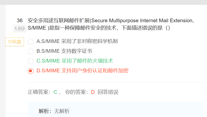 4.S/MIME,采用非对称加密,使用数字证书,支持用户身份认证和邮件加密。