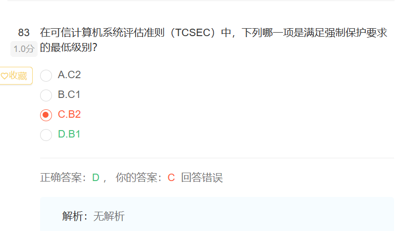 TCSEC(Trusted Computer System Evaluation Criterria)可信计算机系统评估标准。定义了4个级别:D(最小保护)、C(选择保护)、B(强制保护)、A(验证保护),CBA级还可细分。