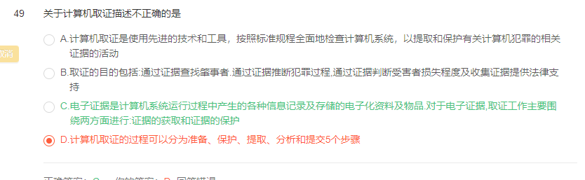 取证工作主要围绕两个方面:证据的获取和证据的分析,取证有5个步骤;