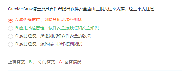 80、软件安全开发中BSI模型错误说法:三根支柱