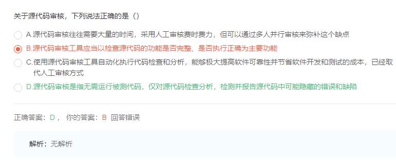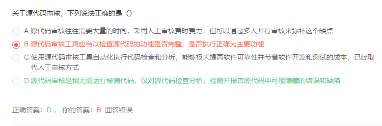 源代码审核是指无需运行被测代码,仅对源代码检查分析,检测并报告源代码中可能隐藏的错误和缺陷