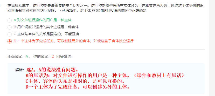 主体是动作的实施者,比如人、进程或设备等均是主体,这些对象不能被当做客体使用(是错误的)