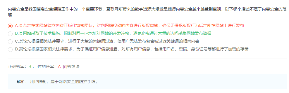 不属于内容安全的范畴:用ip限制,ip限制属于网络安全防护手段