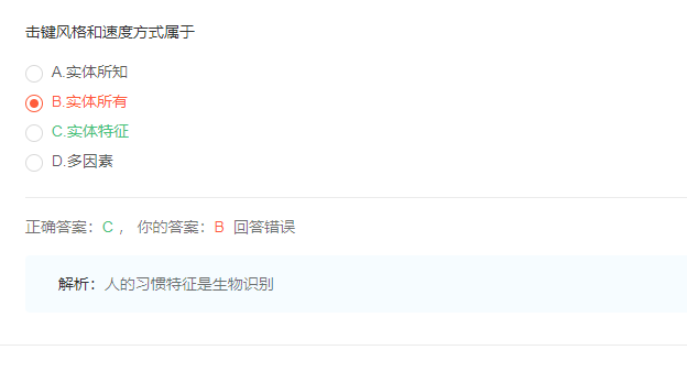 人的习惯特征是生物识别----击键风格和速度方式----所以是实体所有