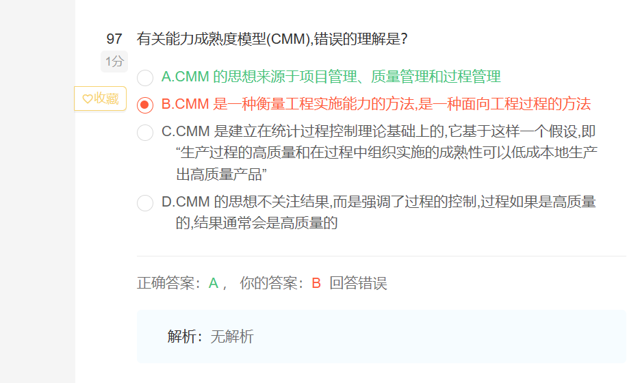 10、CMM(能力成熟度模型)思想来自:系统论